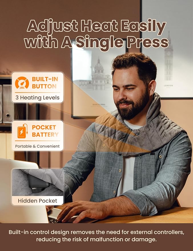 - 5-Zone Heating for Deep Relief Designed with 5 targeted heating zones—1 for the neck, 2 for the upper back, and 2 for the front shoulders—this neck and shoulder heating pad provides full-coverage warmth to relieve muscle stiffness and tension.
