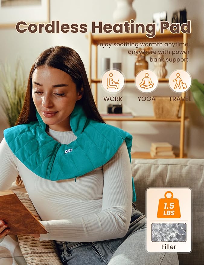 HENNCHEE Heating Pad for Neck and Shoulders and Back Pain Relief, Battery Wireless Heated Wrap Weighted Neck Warmer Blue