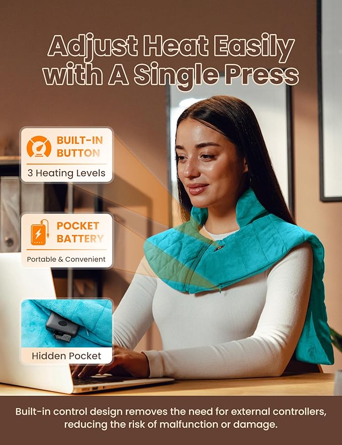 - 5-Zone Heating for Deep Relief Designed with 5 targeted heating zones—1 for the neck, 2 for the upper back, and 2 for the front shoulders—this neck and shoulder heating pad provides full-coverage warmth to relieve muscle stiffness and tension.