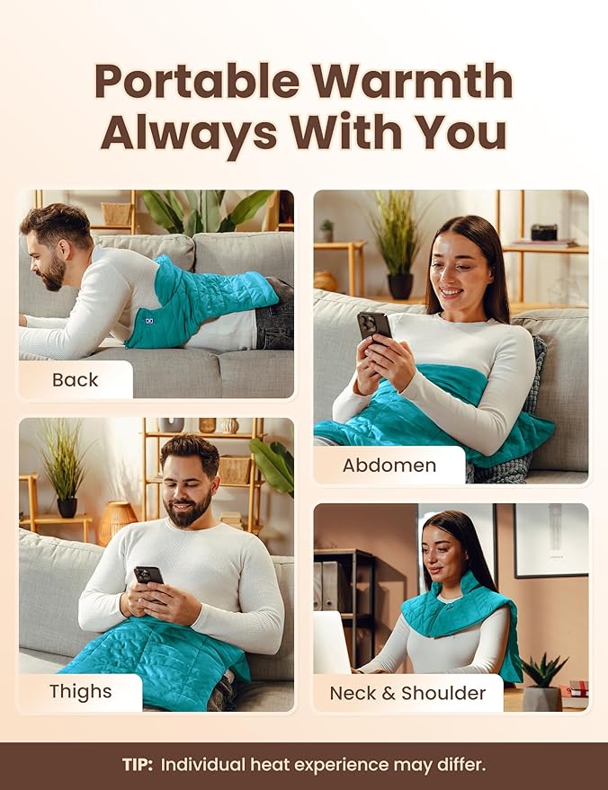 - Truly Cordless & Portable Enjoy full mobility with our portable heating pad powered by a high-capacity 10000mAh battery. Say goodbye to tangled cords and limited movement—perfect for home, office, or on-the-go heat therapy.