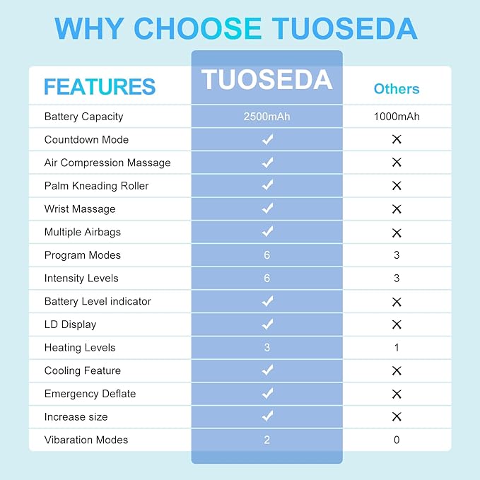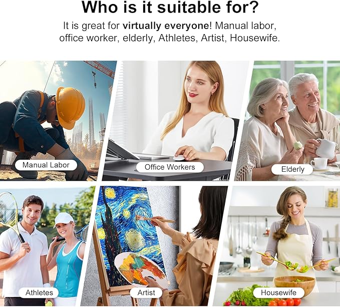 • ใ€๐——๐—ฒ๐˜€๐—ถ๐—ด๐—ป๐—ฒ๐—ฑ ๐—ณ๐—ผ๐—ฟ ๐——๐—ฎ๐—ถ๐—น๐˜† ๐—ฅ๐—ฒ๐—น๐—ถ๐—ฒ๐—ณ & ๐—Ÿ๐—ฎ๐˜€๐˜๐—ถ๐—ป๐—ด ๐—ฃ๐—ฒ๐—ฎ๐—ฐ๐—ฒ ๐—ผ๐—ณ ๐— ๐—ถ๐—ป๐—ฑใ€‘This hand massager is crafted to ease hand fatigue, making it a thoughtful Christmas, birthday, or wellness gift for wives, mothers, husbands, and fathers. Engineered with reliable pneumatic technology, itโ€™s built for consistent performance, while our 365-day worry-free warranty and responsive customer support ensure confidence in its long-term durability. Give your loved ones the gift of relaxationโ€”with comfort you can trust