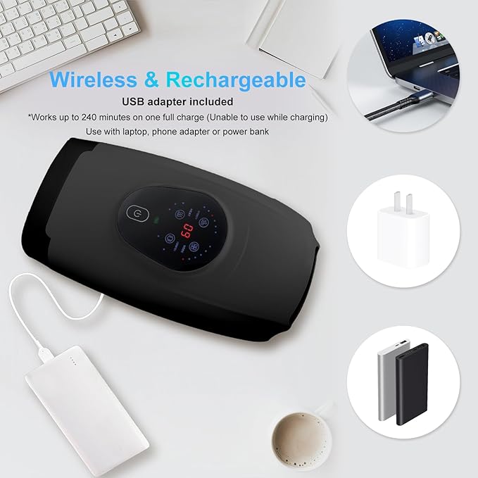 • ใ€๐—ฅ๐—ฒ๐—ฐ๐—ต๐—ฎ๐—ฟ๐—ด๐—ฒ๐—ฎ๐—ฏ๐—น๐—ฒ & ๐—ฃ๐—ผ๐—ฟ๐˜๐—ฎ๐—ฏ๐—น๐—ฒ ๐——๐—ฒ๐˜€๐—ถ๐—ด๐—ปใ€‘Our cordless hand massager for carpal tunnel features a built-in 2500mAh rechargeable lithium battery that delivers 5โ€“6 hours of soothing massage on a full charge. Lightweight and wireless, itโ€™s easy to carry anywhereโ€”from home to office or travel. The intuitive touch button control makes operation effortless and convenient