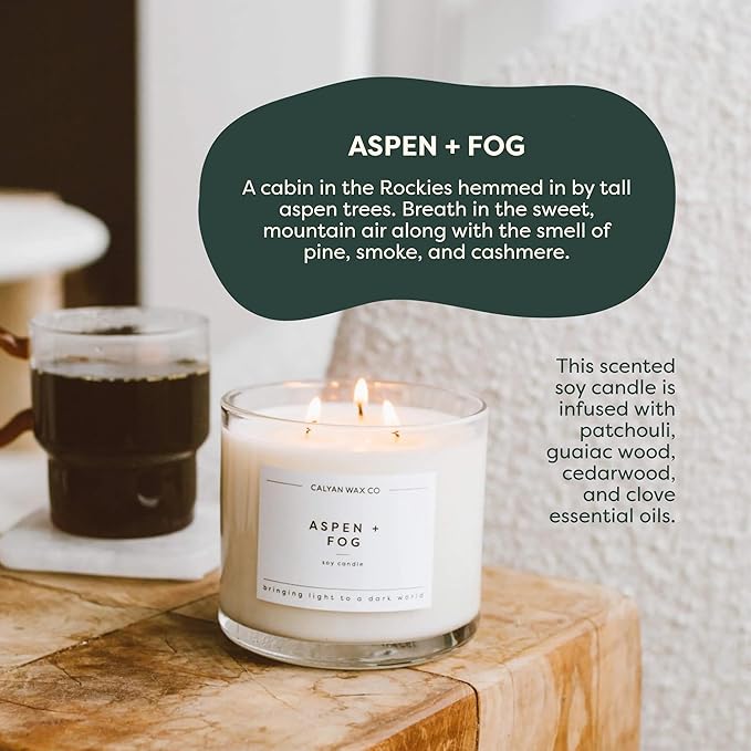- AROMATHERAPY CANDLES with 3 wicks fill your space with long lasting scent. 4 premium scents included: Oakmoss + Amber, Lavender + Bergamot, Seaside + Citrus, and Aspen + Fog.
