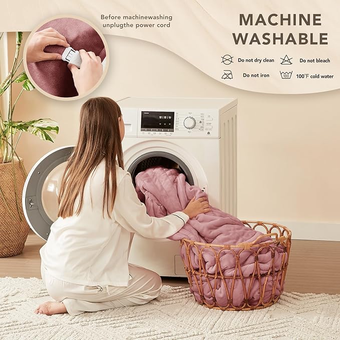 - 5-YEAR WARRANTY: If you encounter any quality problems within 5 years, you can contact us at any time. We have a 7x24-hour online customer service who can reply to your questions at any time. Heated blankets can be machine washed, but please read the instructions carefully before cleaning to avoid improper operation, which can avoid safety problems and prolong the service life of electric blankets.