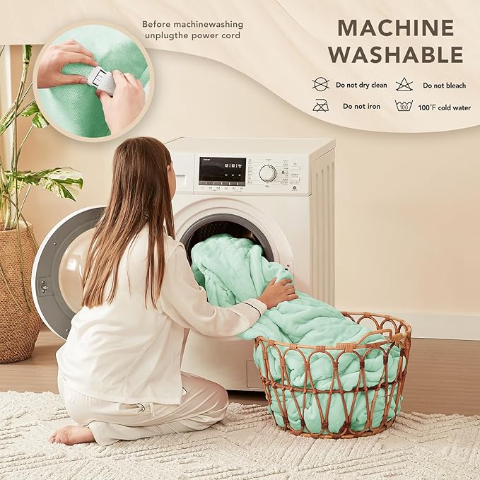 - 5-YEAR WARRANTY: If you encounter any quality problems within 5 years, you can contact us at any time. We have a 7x24-hour online customer service who can reply to your questions at any time. Heated blankets can be machine washed, but please read the instructions carefully before cleaning to avoid improper operation, which can avoid safety problems and prolong the service life of electric blankets.