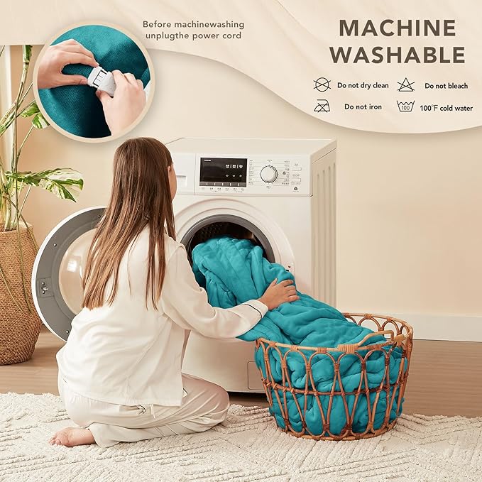 - 5-YEAR WARRANTY: If you encounter any quality problems within 5 years, you can contact us at any time. We have a 7x24-hour online customer service who can reply to your questions at any time. Heated blankets can be machine washed, but please read the instructions carefully before cleaning to avoid improper operation, which can avoid safety problems and prolong the service life of electric blankets.