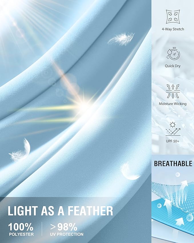 - Quick Dry & Lightweight: This ultra-lightweight and breathable fabric could efficiently wicks moisture away, ensuring fast drying and keeping you cool and comfortable all day long