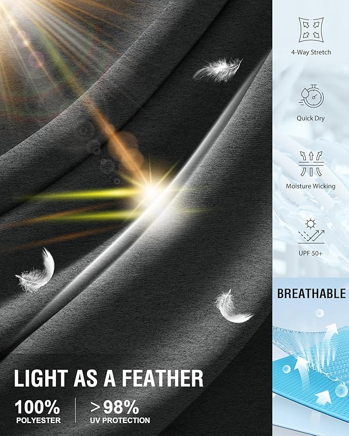 • Quick Dry & Lightweight: This ultra-lightweight and breathable fabric could efficiently wicks moisture away, ensuring fast drying and keeping you cool and comfortable all day long