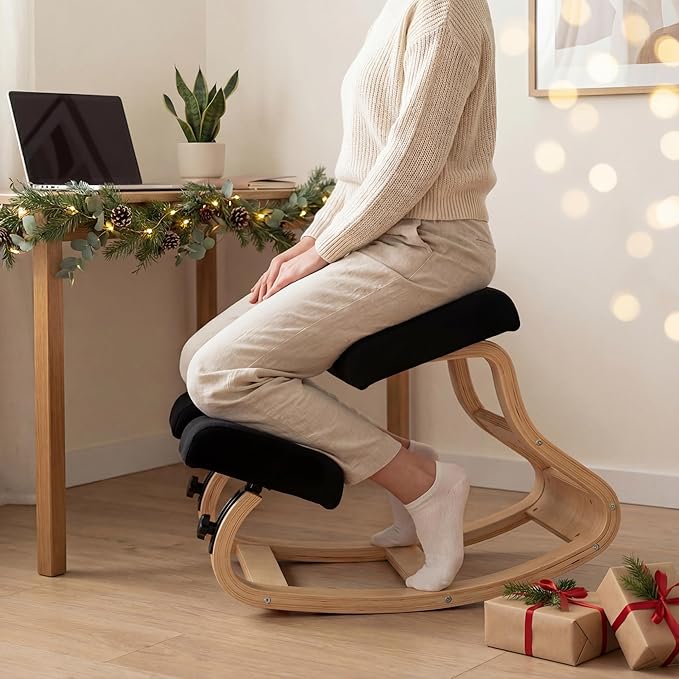 - IMPROVE POSTURE – The gentle rocking motion of this ergonomic kneeling chair encourages a more naturally upright sitting position. Its posture-friendly design helps reduce strain from extended sitting and supports better focus throughout your workday.