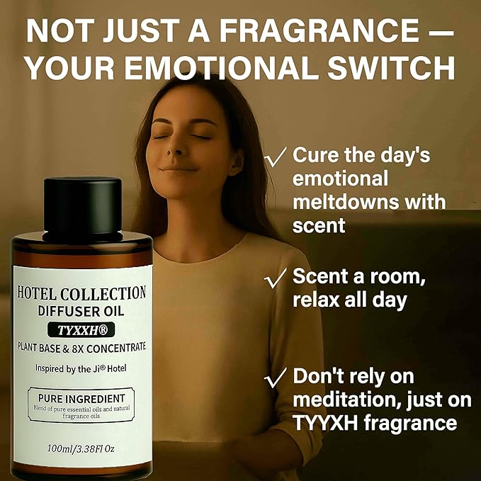- ELEVATE YOUR MOOD & SPACE: TYYXH hotel collection diffuser oils do more than scent a room—they create a truly immersive sensory experience. Designed to support emotional balance and wellbeing, they help relax after a long day, ease stress, and promote restful sleep, while our cold air diffuser oil refined aroma enhances focus and mental clarity for work or leisure. With a multi-layered scent profile, each note unfolds naturally over time, creating a dynamic fragrance journey that adds depth, warmth, and sophistication—just like stepping into a five-star hotel lobby. TYYXH hotel diffuser oil don’t just fill your space with scent—they create a mood, a moment, and a lasting memory