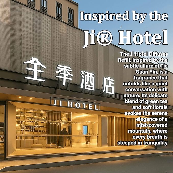 - BRING JI HOTEL AMBIENCE INTO HOME: Inspired by the tranquil elegance of Ji Hotel, TYYXH diffuser oil invites you into a sanctuary of understated luxury. The hotel diffuser oil scent opens with a crisp infusion of Longjing green tea and luminous jasmine, as if morning light streams through quiet courtyards. At its heart, white tea and violet unfold—delicate, graceful, and soothing. Finally, the fragrance settles into the warm, grounding embrace of amber, lingering 6–8 hours with refined depth. Natural yet sophisticated, never overpowering but always present, this waterless diffuser oil's aroma doesn’t just scent a room—it transforms it into a space of calm, elegance, and five-star serenity