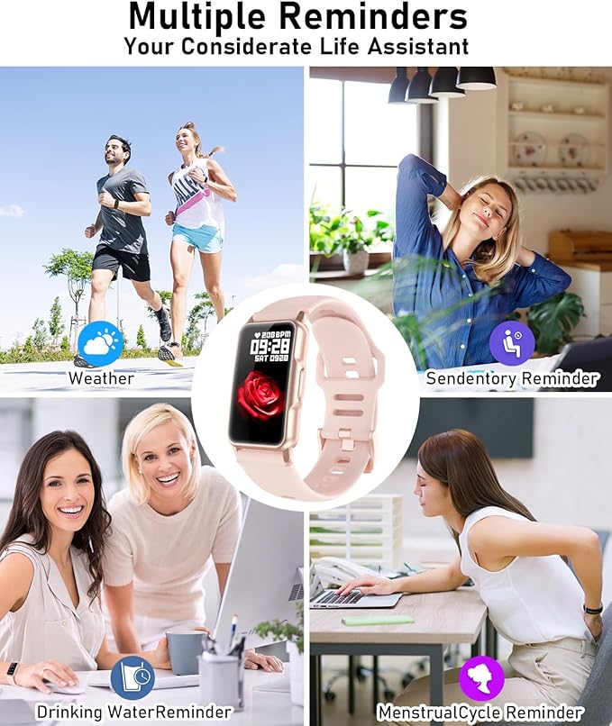 - 【Your Convenient Life Assistant】The versatile design of the blood pressure watch for women and men provide you more features including real-time whether display, sedentary reminder, drinking water reminder, menstrual cycle reminder, remote camerall shooting, making it a convenient assitant in your life. There are 12-hour or 24-hour time display format options and ℉/℃ options, set one style that fits your routines mostly.