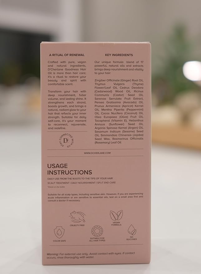 D'Cherlane Hair Growth Oil – Scalp Treatment with Rosemary, Argan, Coconut & Castor Oil Organic | Lightweight, Non-Greasy Formula for Fuller, Thicker, Stronger Strands | For All Hair Types