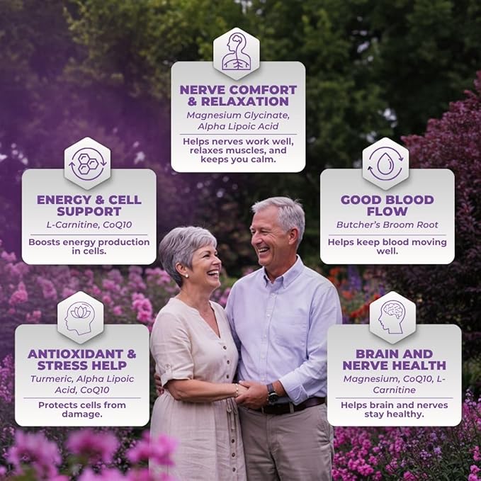 - Supports Nerve Health & Circulation: This supplement blend promotes healthy nerve signals, coordination, and circulation—especially in the arms and legs—helping maintain balance, comfort, energy, and overall nerve strength.