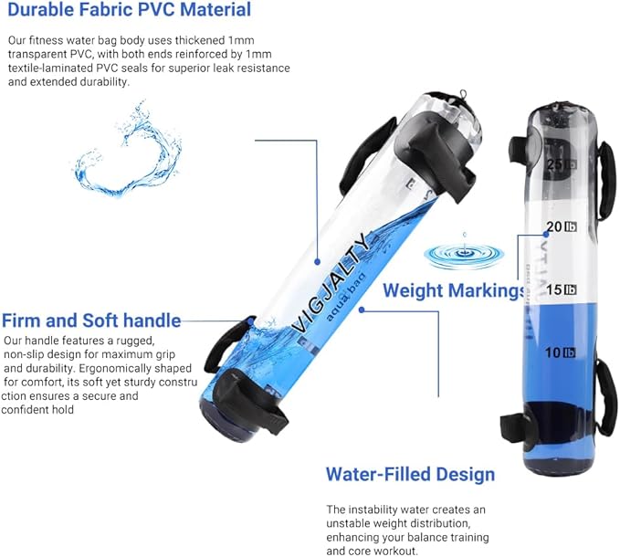 - QUICK SETUP & CUSTOMIZABLE WORKOUT – Just inflate the air chamber and fill with water to create your perfect training resistance in seconds. The transparent design lets you visually gauge the water volume, allowing effortless weight adjustments by simply adding or removing water—ideal for beginners and advanced users alike. (Includes a handy air pump for easy setup.)The instability of the water helps to strengthen all of the smaller stabilizing muscles in the shoulder
