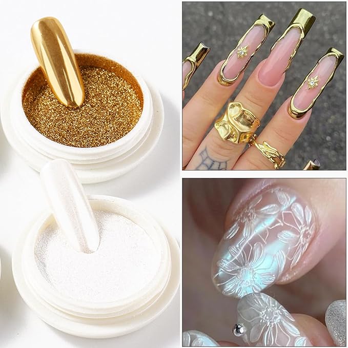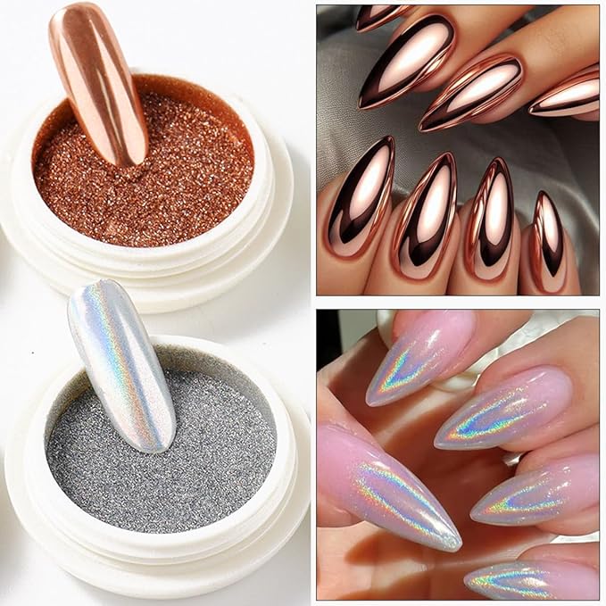 - PREMIUM SET: Complete 6-color chrome powder collection including gold, silver, rose pink, bronze and white for creating stunning metallic nail designs