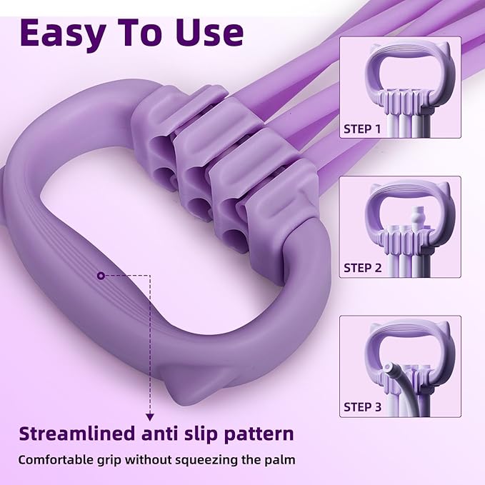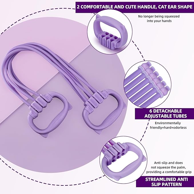 - Unique Design: Innovative Detachable resistance bands with 6 adjustable tubes, Easily customize resistance levels (15-90lbs) and detach components for quick post-workout cleaning. Features ergonomic cat ear handles for superior comfort and slip-free control during intense training.