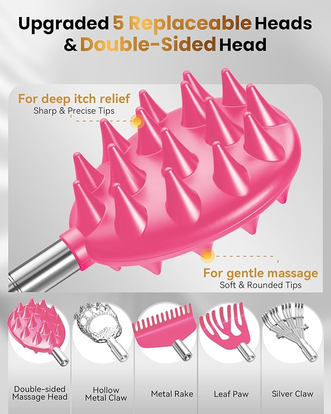 - 【5 Different Scratcher Heads for Customized Experience】The HEYAXA Itching Scratcher Set includes 3 detachable heads: the Dual Sides Scratcher features one side for scratching and the other for massage; the Bear Claw Head provides efficient and thorough scratching; and the Rake Scratcher offers a wider edge for a comprehensive scratching sensation. Enjoy versatile experiences that cater to the needs of every family member!