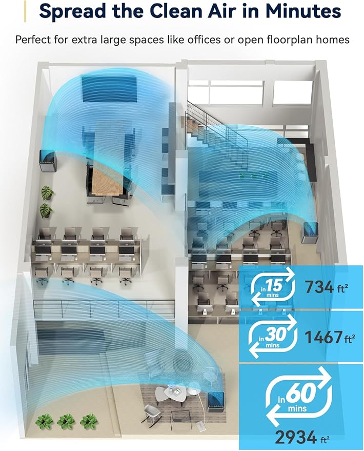 - MORE EFFECTIVE: Unseen to the naked eye, you may unwittingly be inhaling billions of unseen pollutants with every breath you take. OxyPure Smart Air Purifier is proven to effectively purify a 2,934 sq. ft. large area in 1 hour.
