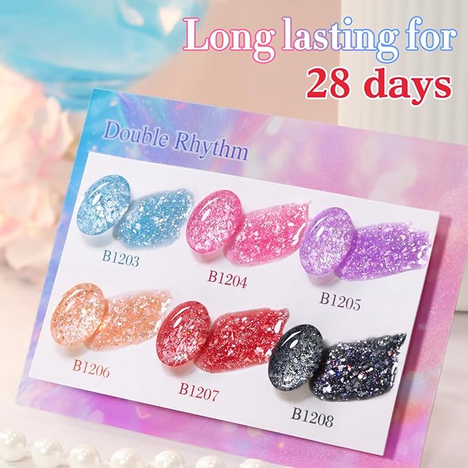 - Easy Application for Beginner :This glitter gel nail polishset need to be cured under LED nail lamp. These need to be cured under UV or LED Lamp for 60-120s. Please shake the bottle or warm it with hot water before use especailly in cold weather, to acheive a better effect.