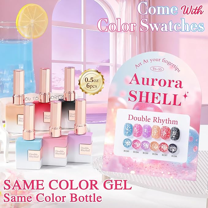 - 6 Pcs Gel Polish: 6pcs 15ml glitter gel polish for all season, will come with color swatches.These gel polish kit need to be cured under UV or LED Lamp for 60-120s. Must apply with Base Gel and Top Coat. Please shake the bottle or warm it with hot water before use, to acheive a better effect.