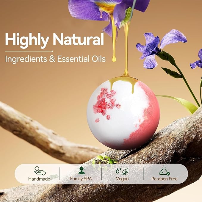 - Natural Essential Oil Aromatherapy: We choose high-quality natural essential oils, As the bath bomb dissolves, a rich floral - fruity scent fills the air, creating an olfactory dream. Surrounded by this fragrance, you'll unwind, and all stress will melt away as you enjoy a blissful bath