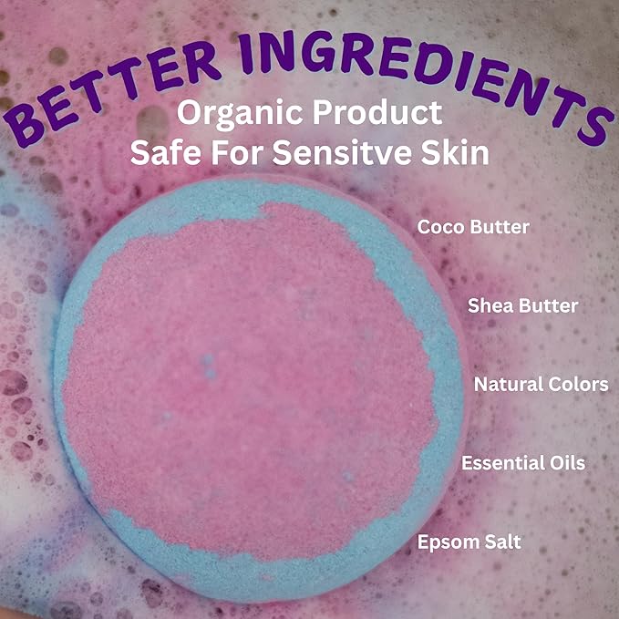- Kid Friendly Themes, Color & Scents: Non toxic kids bath bomb designed with your child's safety in mind. Look and smell amazing both in and out of the water. Large sized to ensure a long lasting epic bath fizzy fun. Unique kid friendly scent of blue grapes. Great for daily use or special occasions. Enjoy this high quality bath bomb that leave your child feeling indulged in epic fizz, fun and adventure.