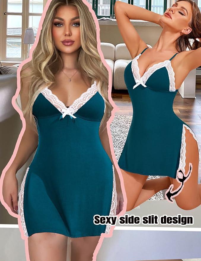 • ★ Exquisite Material: The sexy nightie full slip for women is made of high-quality lace and modal, it's smooth, stretchy and lightweight very comfortable to wear for night .Soft and breathable, charming and sexy, delivering comfortable wearing experience.