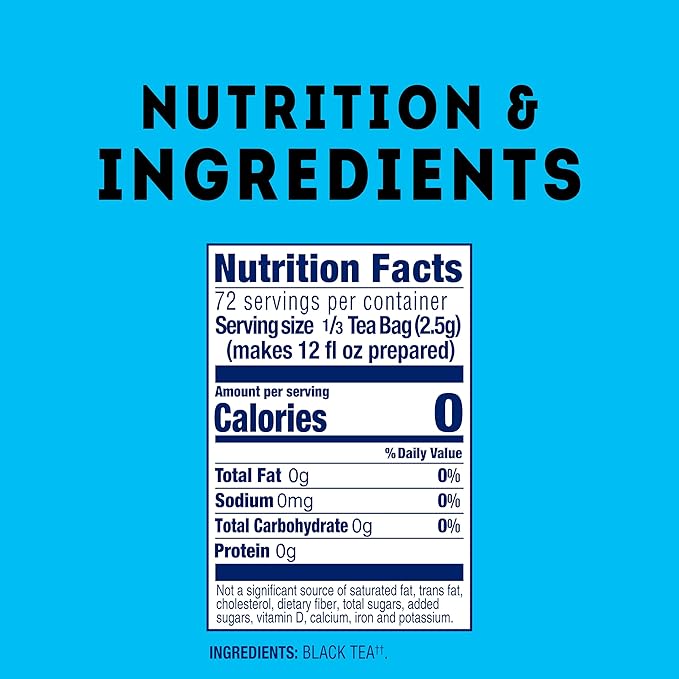 - 1 TEA BAG = 1 QUART Brew one quart of unsweetened iced tea per tea bag for a total of 24 quarts per box