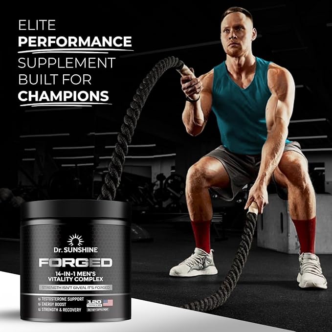 DR. SUNSHINE Forged 14 in 1 Men's Vitality Complex | Shilajit for Men, Energy & Focus Support, Strength, Mood & Recovery with Ashwagandha, Tongkat Ali, Fenugreek Capsules & More | 120 Capsules