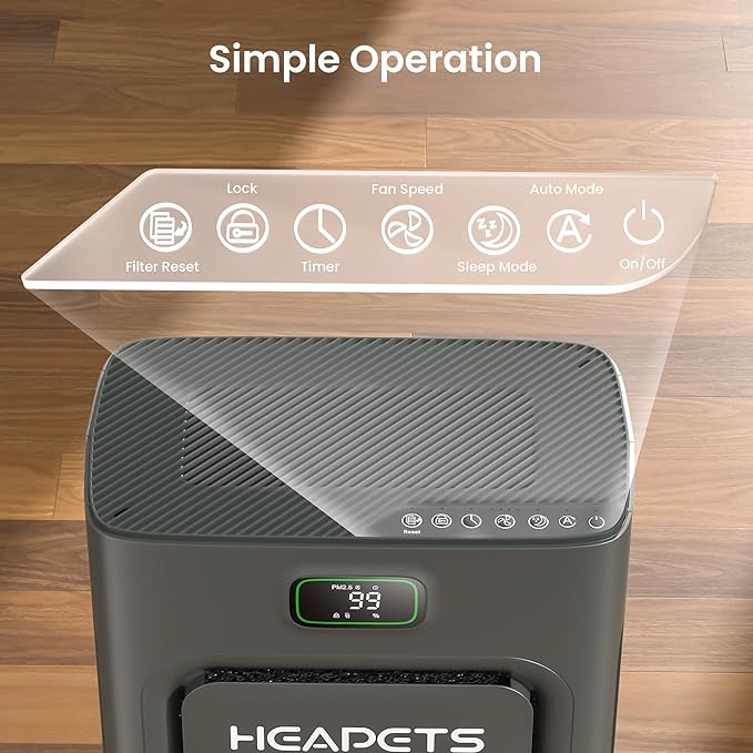 - Certifications and After-Sales Service: Our this 2025 Upgraded Air Purifier is CE, EPA, ETL and FCC certified and complies with the California Air Resources Board (CARB) and California Proposition 65 (CA65) for indoor cleaning equipment. Each HEAPETS air purifier comes with 12 months warranty, 7/24 hours customer service and lifetime technical support. If you have any concerns or issues, please feel free to contact us.