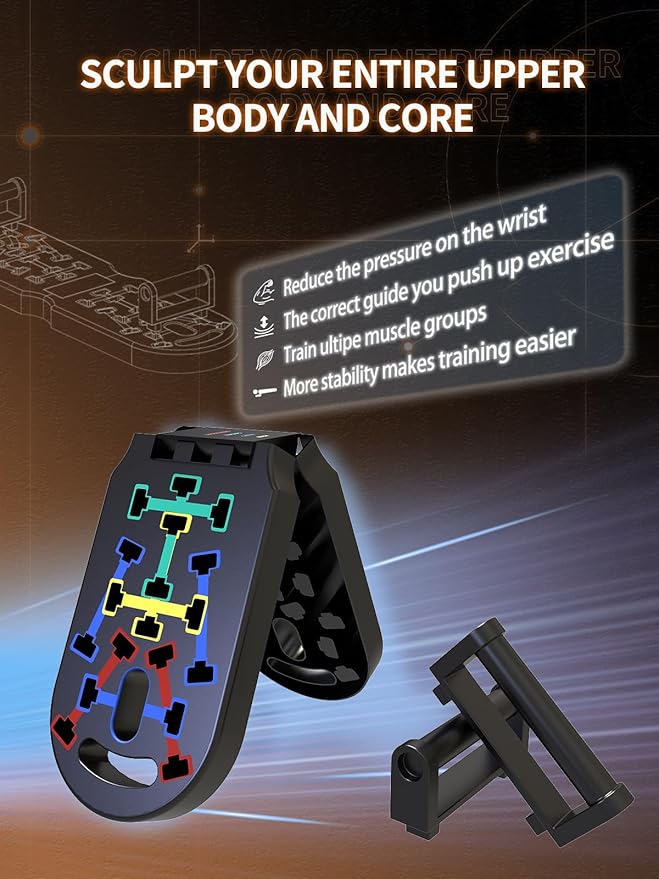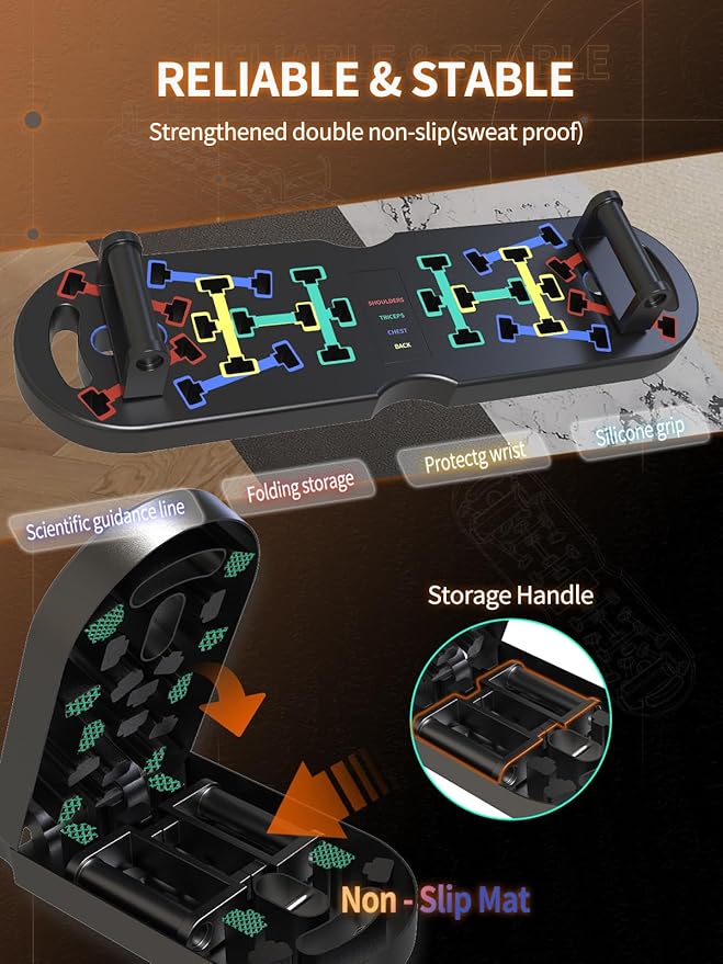 - 💪【Scientific Design】Color-zoned training board designed based on sports data. This push up board not only improves the exercise efficiency of the core muscle groups by 80%, but also specializes in training the chest, triceps, shoulders, back and other parts to achieve max effect.The newly upgraded 20 anti-slip points ensure zero movement of the fitness equipment on wooden boards, tiles, or fitness mats, allowing you to focus 100% on exercise.