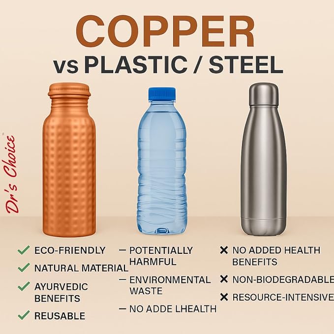 Dr's Choice; By Copperking Copper Water Bottle for Drinking 32 Oz | Ayurvedic-Inspired, Hammered Design, Eco-Friendly, Men and Women For Yoga & Fitness Use (Hammered)