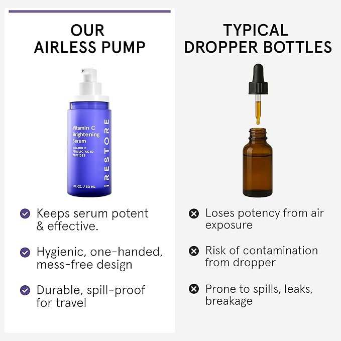 - Keep Potency to the Last Pump: Unlike dropper bottles our airless pump protects against oxidation, delivering maximum strength from first use to finish, layers under SPF or makeup, and works morning or night for oily, dry, or combination skin.