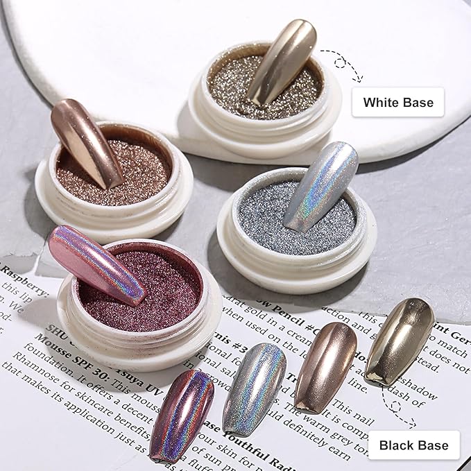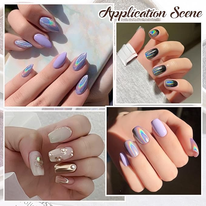 - Versatile Usage - Our iridescent aurua nail chrome powders are compatible with UV gel nails, acrylic, natural, and artificial nails, offering endless possibilities for nail art decor. Each powder promises a unique effect, depending on the base color and technique used, making your manicure stand out.