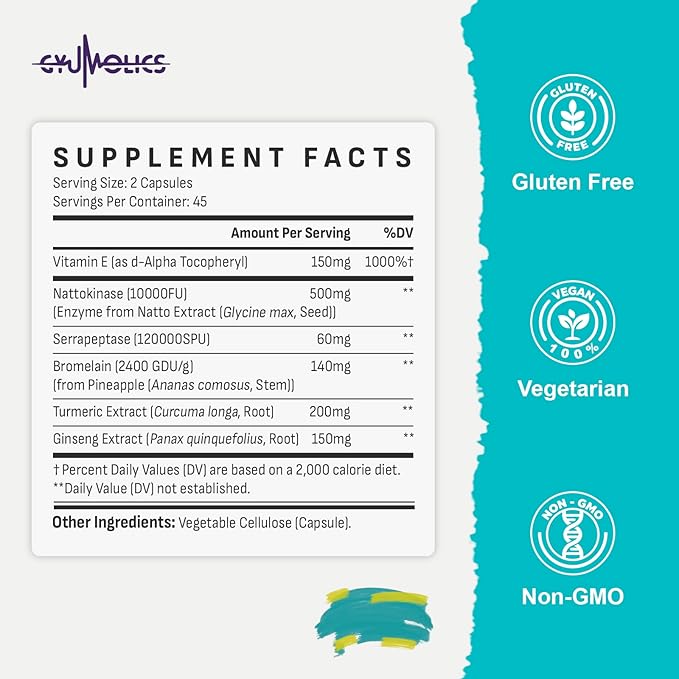 - Multi-Enzyme Complex: This blend combines nattokinase, serrapeptase, bromelain, curcumin, and ginseng extract—selected for their complementary properties in maintaining normal bodily functions.