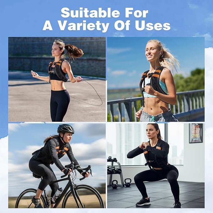 - [Ergonomic Design] -Balanced weight distribution minimizes shoulder fatigue, so you can maintain proper posture, and maximize workout effectiveness. Our adjustable weighted vest woman two straps, it can be better adjusted size to perfectly fit all kinds of body shapes and chest shapes.