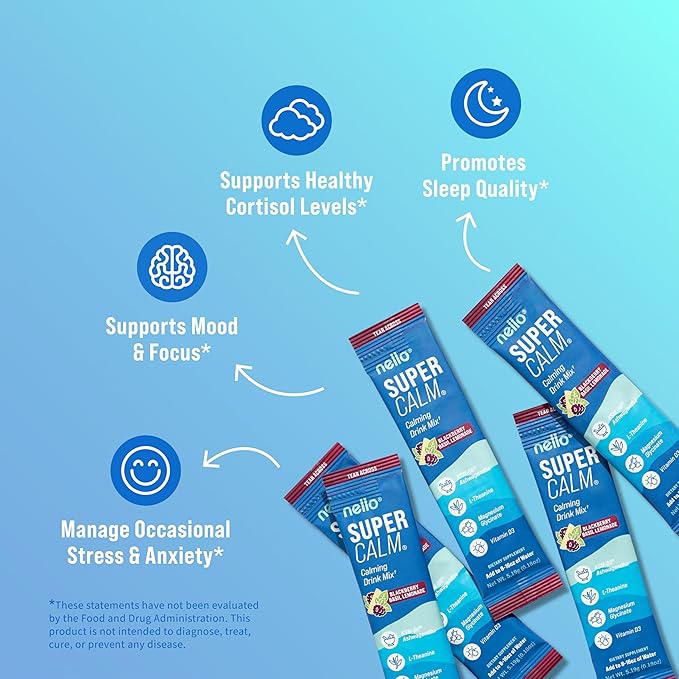 Supercalm Drink Mix -Ashwagandha KSM 66, Magnesium Glycinate & L-Theanine Supplement, Vitamin D3- Ashwagandha Root Extract- Focus and Relaxation Support (20 Travel Packets)- Blackberry Basil Lemonade
