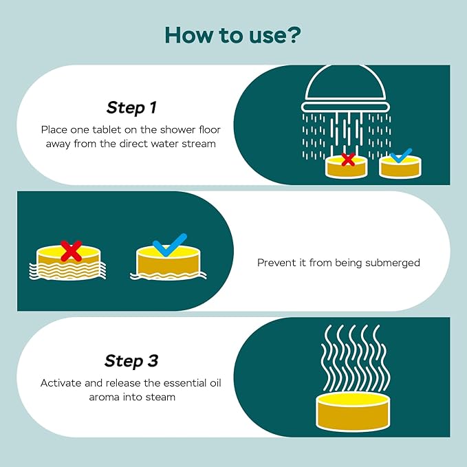 - NATURAL WELLNESS SOLUTION: Made with natural ingredients and pure essential oils - free from artificial fragrances and harmful chemicals. Simply place one steamer in your shower for an instant aromatherapy session that helps reduce stress and enhance mood.