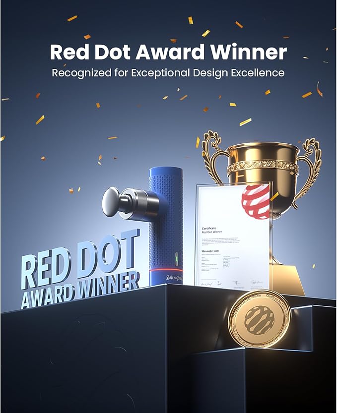 - Red Dot Award Winner: Recognized for exceptional design excellence, the A7 mini provides an ultimate deep tissue massage solution in a compact design. Engineered for lasting performance, the massager gun combines a strategic metal accent for enhanced durability and textured silicone handle that absorbs vibrations while preventing slippage—ensuring secure, fatigue-free comfort during intense use. Premium materials deliver lasting durability and effortless muscle recovery