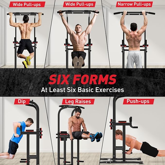- 【Multi-Functional Equipment】This is a Multi-Functional Pull Up station that supports pull-ups, dips, push-up, as well as abdomen workout , which could help train your back,chest, arms, shoulders, waist, legs and abdomen ,Efficient Exercise Total Body Building