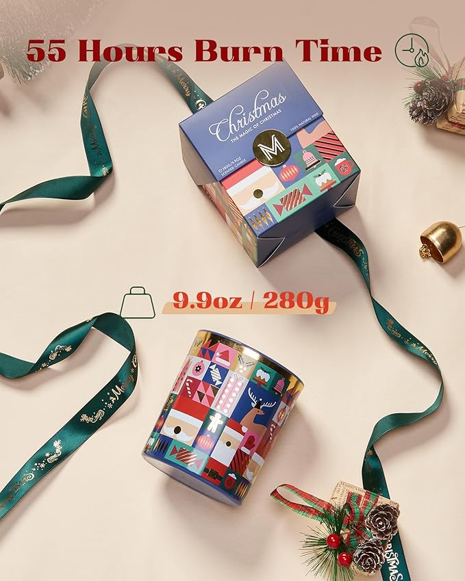 M&SENSE Magic Christmas Soy Candle for Home, Soy Wax 9.9oz 55 Hours Clean Non Toxic Slow Burn, Relaxing Cozy Winter Candles for Stress Relief, Christmas Scented Gift for Holiday Celebration