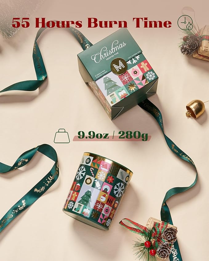 M&SENSE Christmas Pine Scented Winter Candle for Home, Soy Wax 9.9 oz 55 Hours Non Toxic Clean Burn, Fir Balsam Scent Long Lasting Relaxing Candle for Stress Relief, Holiday Gifts for Thanksgiving