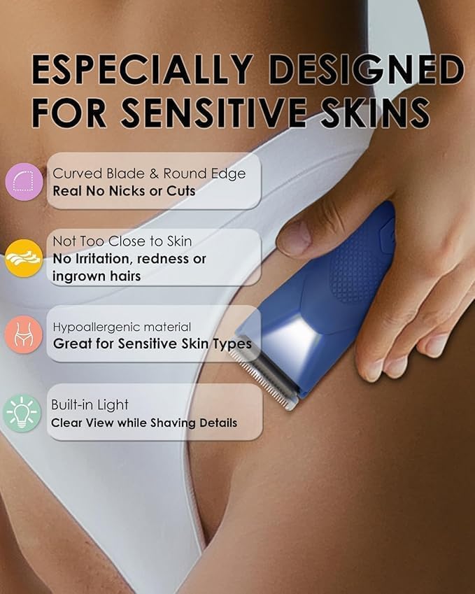 - 🌸Flawless Skin, Effortless Glide🌸: Ditch the razor burn and awkward nicks—this personal hair trimmer delivers buttery-smooth results anywhere, from chest to under the belt. Its replaceable hypoallergenic blades and turbo motor zip through body hair without tugging, leaving just silky skin and next-level confidence