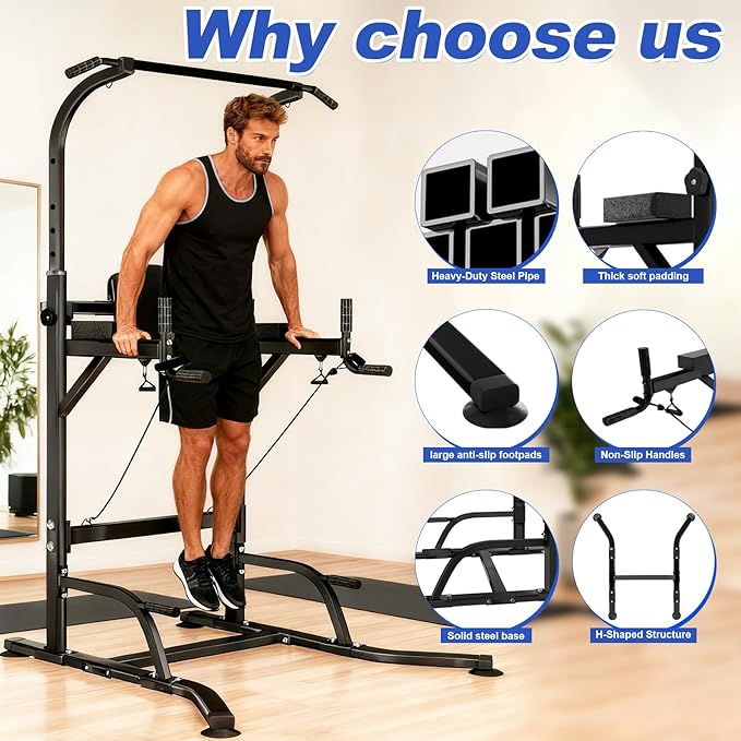 - Space-Saving Design & Easy to Assemble: Perfect for home gym environments. This power tower pull up bar is compact, easy to install with included manual, and fits in apartments, garages, or small workout spaces