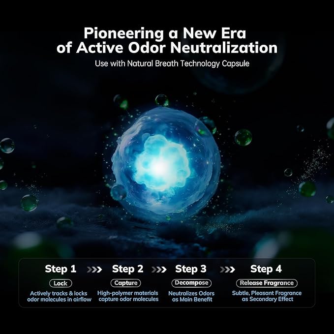 - 【New Era of Air Purification and Active Deodorization】The Natural Breath Capsule ushers in a new age of active indoor deodorization. AEOCKY has extracted and refined essences from over 300 natural substances to identify the most effective compound for neutralizing indoor odors while releasing a subtle, pleasant fragrance. When used with an AEOCKY air purifier, it delivers dual action: passive air filtration plus active deodorization—for air that's not just clean, but thoughtfully refreshed.