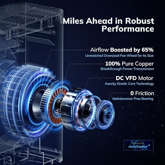 - 【AEOCKY Proprietary YearChange Filter Technology】The only brand dedicated to advancing filter longevity, we believes that filter is the soul of air purifier. That's why we innovate filter materials to extend life—ours last more than 5X longer than conventional filters* (which replace 1–2 months). With two Pet-Specific Washable Pre-Filter that capture large particles like hair and dander, regular cleaning further prolongs filter's life. (Based on testing in independent lab with GB/T 18801-2022.)
