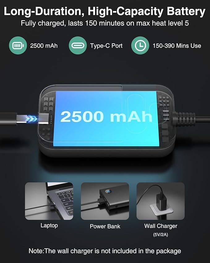- 【2500mAh High-Capacity Battery】 Easily control this sleep eye mask even while wearing it. The 2500mAh battery ensures a comfortable, gentle fit and provides extended use, lasting 150 to 390 minutes on a full charge. Ideal for travel or daily routines, each session is recommended to last 15 to 30 minutes for optimal comfort and effectiveness