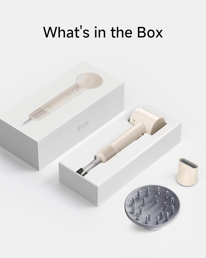 Laifen SE Lite Hair Dryer, Negative Ionic Blow Dryer with 100,000 RPM Brushless Motor for Fast Drying, High-Speed Low Noise Thermo-Control Hair Dryer with Lightweight Design and 2 Nozzles