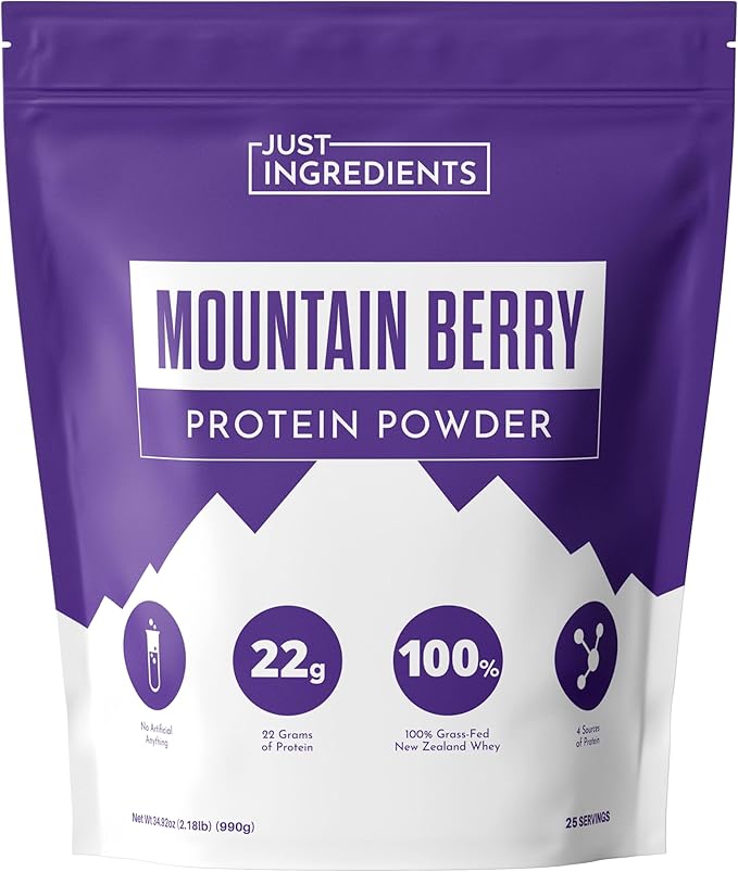 JUST INGREDIENTS Mountain Berry Protein Powder – 30-Serving Blend with 100% Grass-Fed Whey & Organic Plant Proteins – Mixed Berry Flavor with Real Fruit – Supports Muscle Recovery, Energy*
